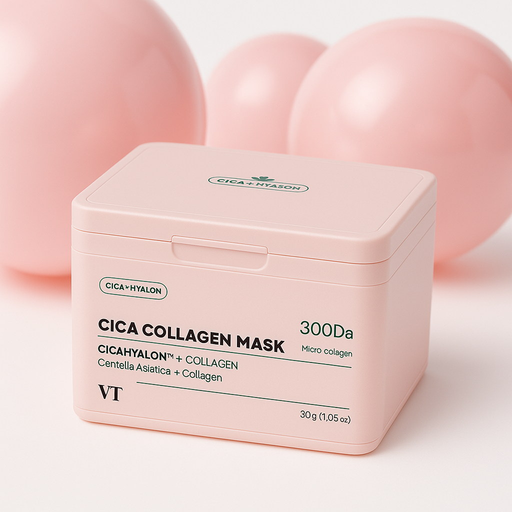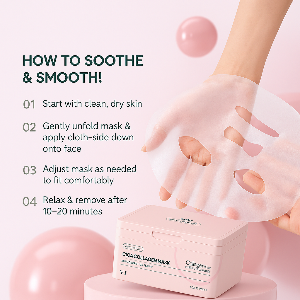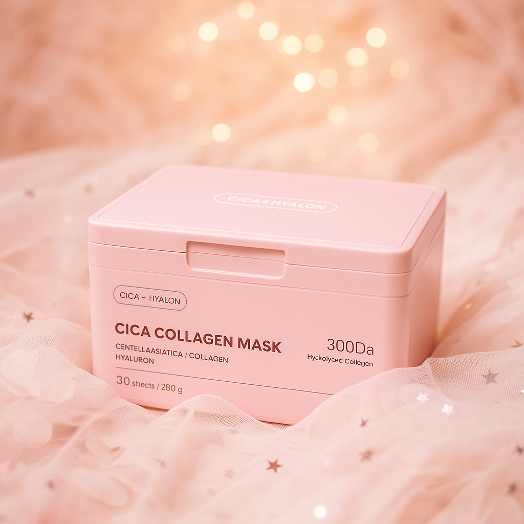 Experience instant hydration and visible glow. Our Cica Collagen Mask soothes, smooths, and plumps tired skin in just minutes — your quick step to a refreshed, radiant complexion.